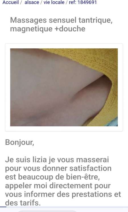Bonjour, Je suis Masseuse thérapeutique magnétiseuse énergéticienne je travaille les massage traditionnel chaman ,sur futon ou table de massage très confortable, mon travail consiste a travailler en profondeur et libérer vos chacra , vous faire sentire les bienfaits d’un réel massage. Je vous accueille dans un cadre avant tout chaleureuse dans la compagne dans l'hygiène a la perfection et le respect l'honnêteté. Vous avez la possibilité de stationner votre véhicule facilement et gratuitement, et possibilité de prendre une douche avant ou apres ,je travaille avec l'huile de pépin de raisin travailler naturellement et non industriellement. merci de me contacter directement pour plus d'informations concernant mes prestations et disponibilités. Je ne donne aucune information par SMS, je préfère la communication.