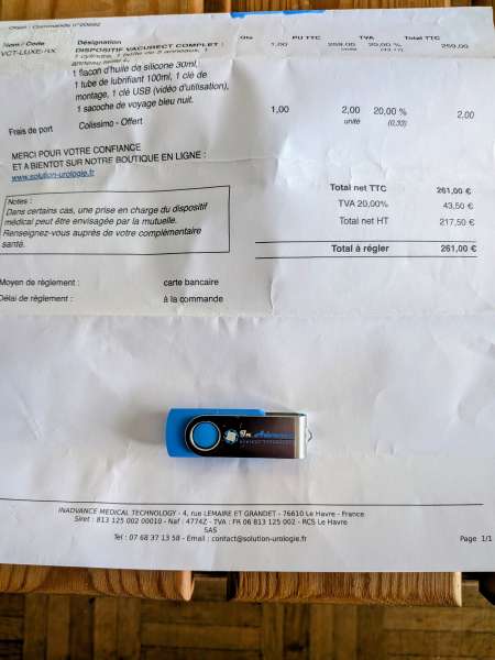 Vds pompe pénienne dispositif VACURECT complet de marque ADVANCE : Intégrateur de solutions médicales innovantes pour amélioration significative et maintien de l'érection 1 cylindre, 1 boite de 6 anneaux, 1 tube de lubrifiant 100 ml, 1 flacon huile de silicone 30 ml, 1 clé de montage, 1 vidéo d'utilisation (clé USB), 1 sacoche de voyage bleu nuit. L'ensemble est impeccable (acheté neuf 261 €) Remise en main propre à Lyon.